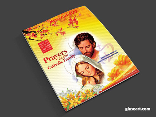 Cũng nằm trong chuỗi các công việc thiết kế ấn phẩm phục vụ dịp Tết Đinh Dậu, ở bài viết trước, mình đã chia sẻ một mẫu bìa Tập san Công giáo mừng Xuân Đinh dậu 2017 rồi phải không? Hôm nay, mình tiếp tục chia sẻ tới các bạn một mẫu bìa Tập san Công giáo Xuân Đinh Dậu khác, được đánh giá là đẹp hơn và hài hòa hơn mẫu trước.